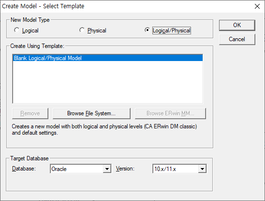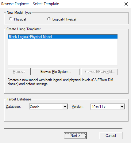 ERwin에 오라클 테이블을 연동