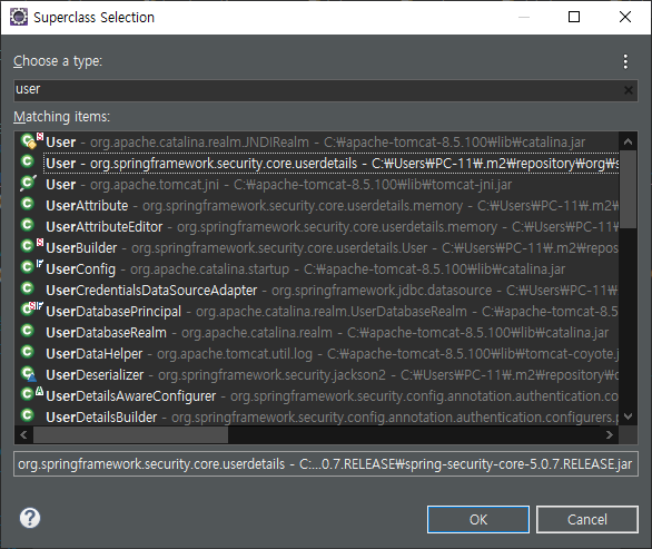 // User : 스프링 시큐리티의 사용자 정보를 관리하는 사용자 최상위클래스