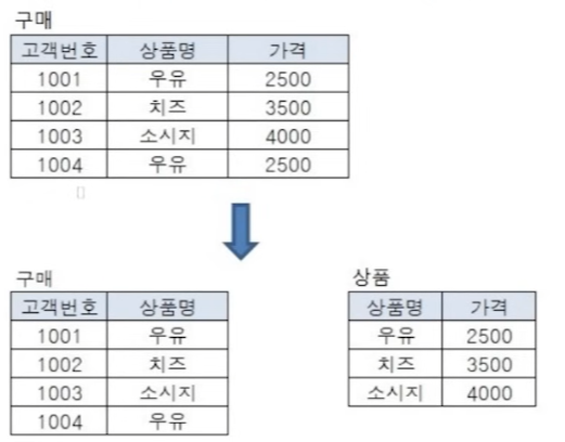 따라서 (고객번호 + 상품명)과 (상품명 + 가격)으로 분리하는 것이 제 3 정규화