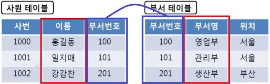 - 분리되면서 두 테이블은 서로 관계를 맺게 되고, 이 두 테이블의 데이터를 동시에 출력하거나 관계가 있는 테이블을 참조하기 위해서는 데이터를 연결해야 하는데 이 과정을 조인이라고 함