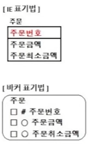 - 바커 표기법에서는 속성 앞에 동그라미가 NULL 허용 속성을 의미