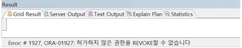 REVOKE SELECT ON PROFESSOR FROM HR, BI; -- 에러(이미 회수된 권한 재회수 불가)