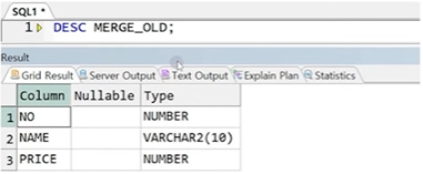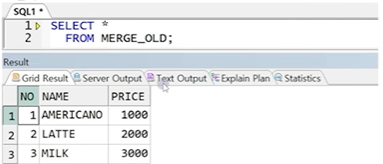 INSERT INTO MERGE_OLD VALUES(3, 'MILK', 3000);