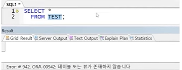 - 일반적으로 본인(접속한 계정) 소유가 아닌 테이블은 원칙적으로 조회 불가(권한 통제)