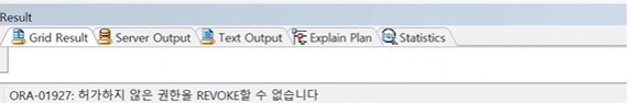 - WITH GRANT OPTION 으로 받은 오브젝트 권한을 다른 사용자에게 부여할 수 있음