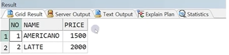 예제) AMERICANO의 PRICE를 1500으로 변경