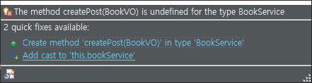 마찬가지로 return에 있는 createPost는 Dao에 메소드가 없기 때문에 연동이 안된다는 오류이기 때문에 f2를 눌러 메소드를 만들어주자